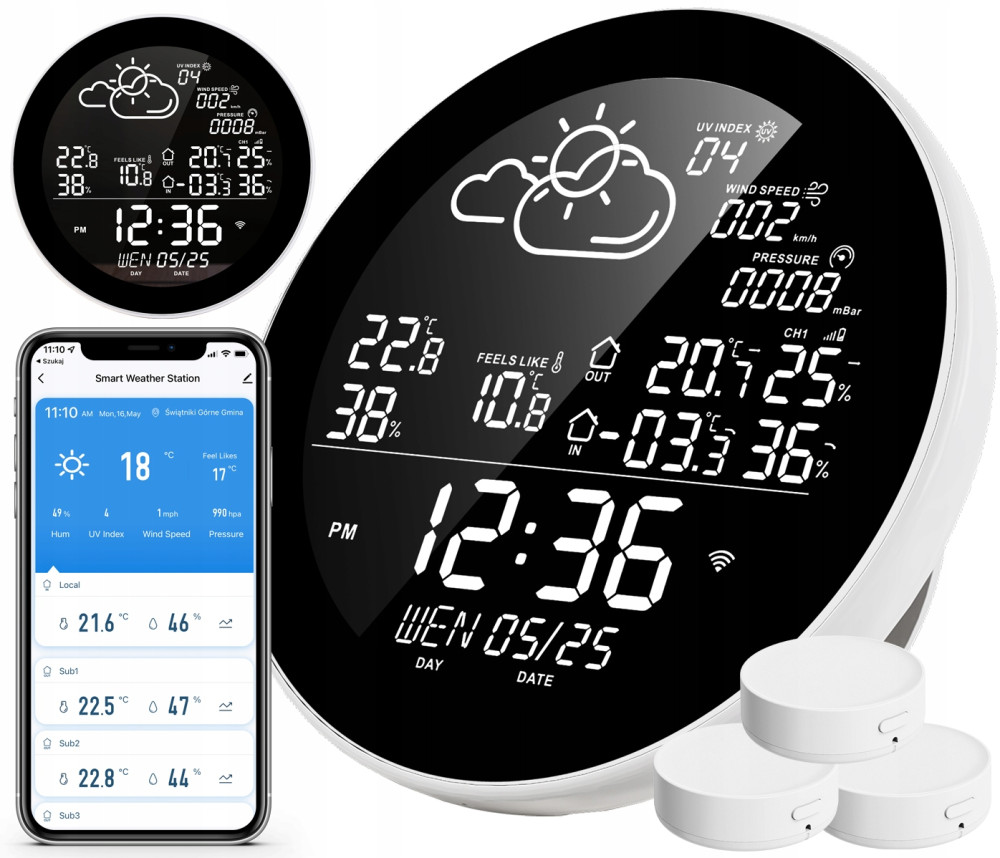 Stacja pogody na żywo podaje dane dotyczące parametrów: