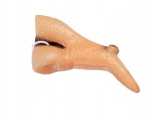 Delikatnie zakrzywiony z pieprzykiem na środku.