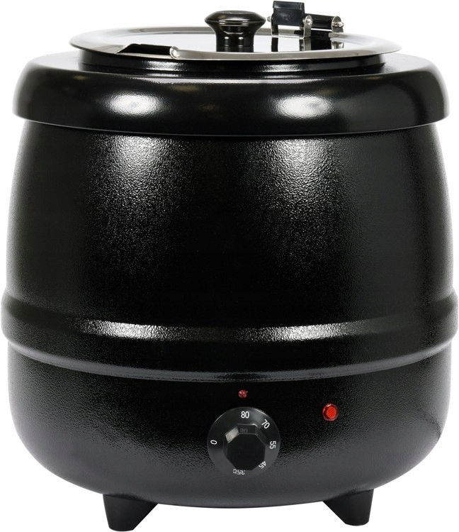 Stalowa obudowa malowana na czarno, wyjmowany pojemnik na zupę i pokrywa z otworem na chochlę. Idealny do serwowania zup, kremów i sosów.