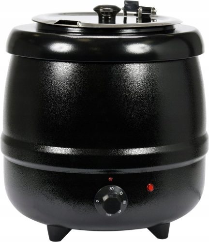 Moc: 400 W, Zasilanie: 230 V, Regulacja temperatury: 35~85°C, Pojemność: 9L, Materiał: Stal nierdzewna SS 304, Stalowa obudowa, Termostat, Pokrywa z otworem na chochlę. Wymiary (DxSxW) [cm]: 34x34x37.