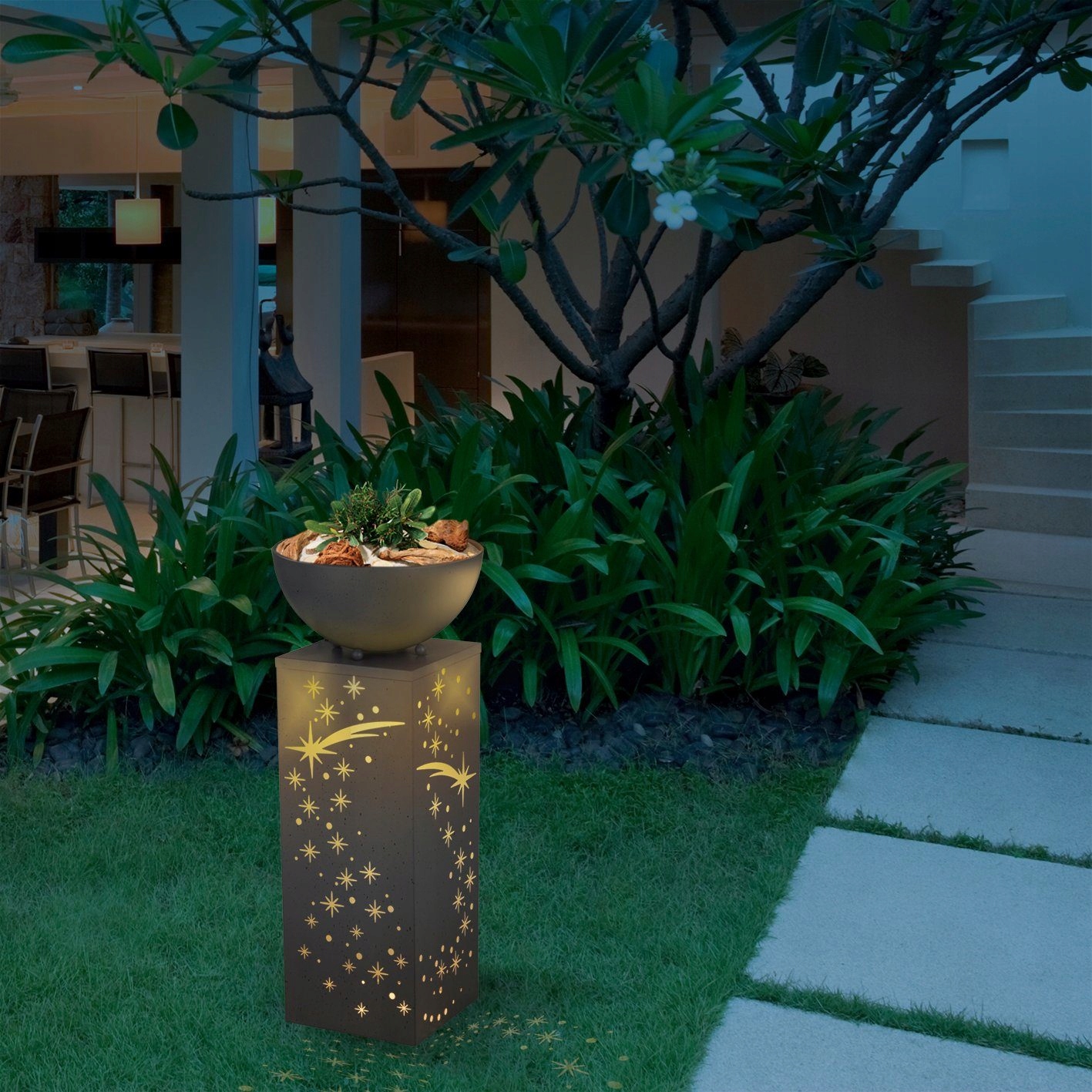 EASYmaxx ozdobna kolumna o wyglądzie betonu z donicą - spadająca gwiazda. Z misą do własnych kompozycji. Idealna do salonu, ogrodu, tarasu i balkonu.