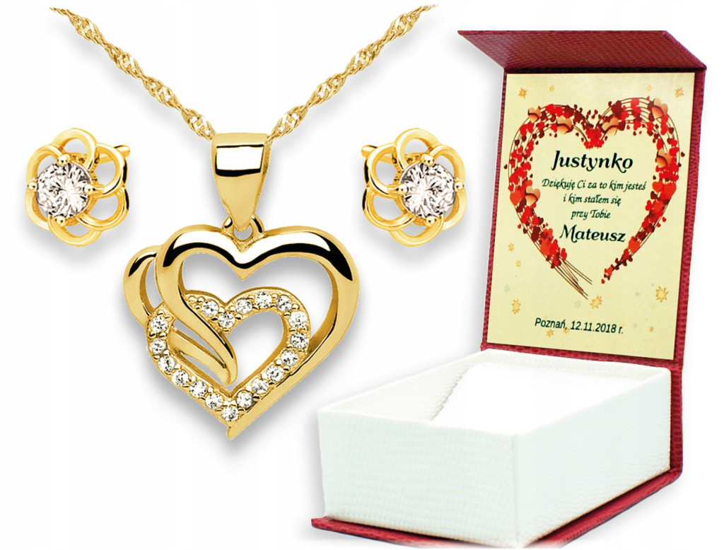 Piękna symboliczny komplet w kształcie serduszka z cyrkoniami i kwiatów nadaje się idealnie na prezent dla wyjątkowej osoby.