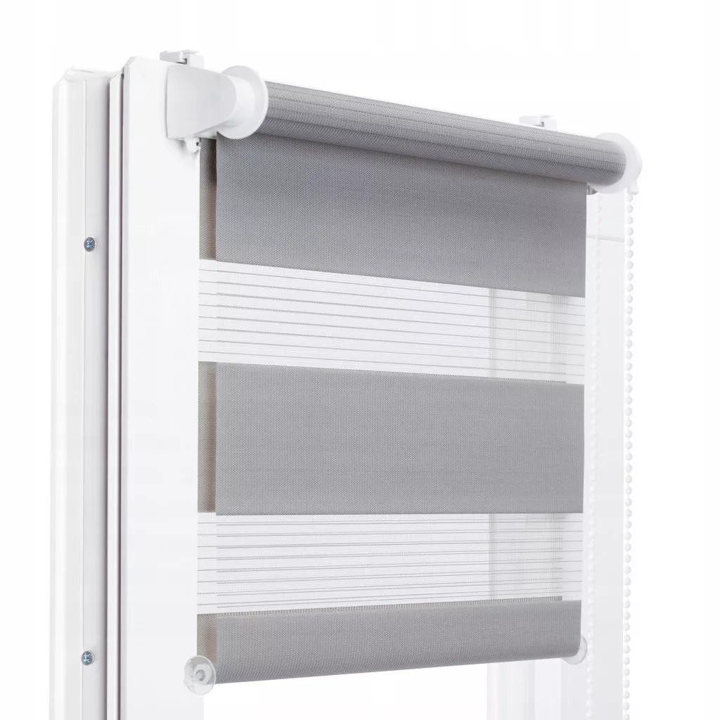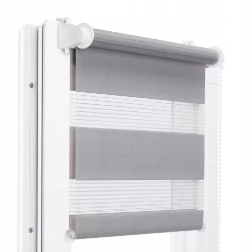 Rolety Dzień Noc to nowoczesne i praktyczne wykończenie okna. Montuje się je bezpośrednio na ramie okna (bezinwazyjnie), bez konieczności wiercenia otworów. Naprzemienne zachodzące na siebie pasy tkaniny stanowią bardzo efektowny sposób zasłaniania okien oraz pozwalają na płynną regulację rozświetlania bądź zaciemnienia pomieszczenia. System roletowy wyposażony jest w mechanizm samoblokujący tzn. podciągając roletę automatycznie zatrzymuje się na danej wysokości. Wszystkie rolety produkujemy na wymiar, dzięki czemu są zawsze idealnie dopasowane.