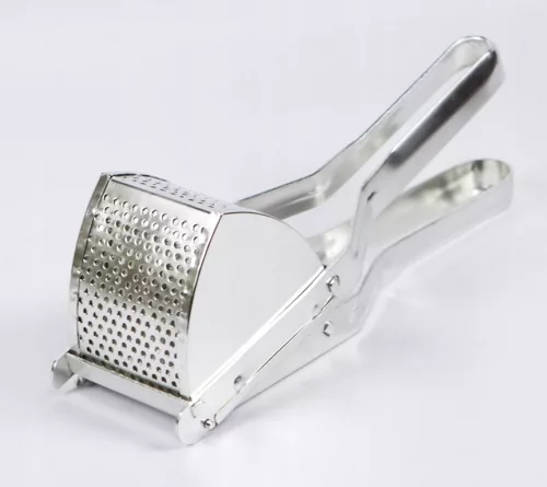 Główne cechy produktu praska do gotowanych ziemniaków, warzyw prosta w obsłudze wykonana ze stali w ocynku niezastąpiona w każdej kuchni.