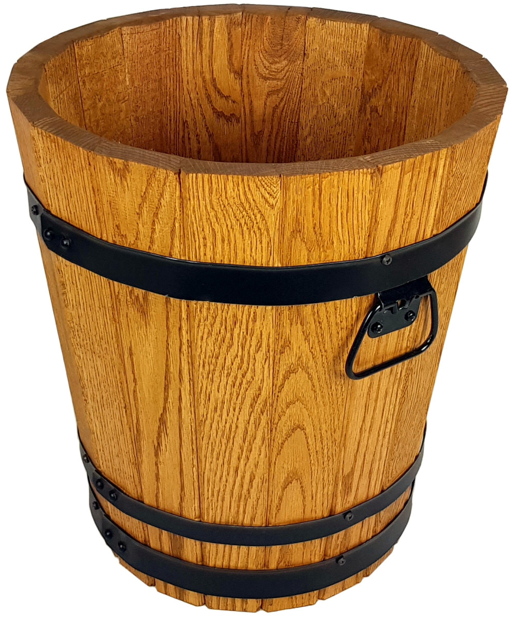 Donica posiada otwór drenażowy w grubym dnie z drewna dębowego.