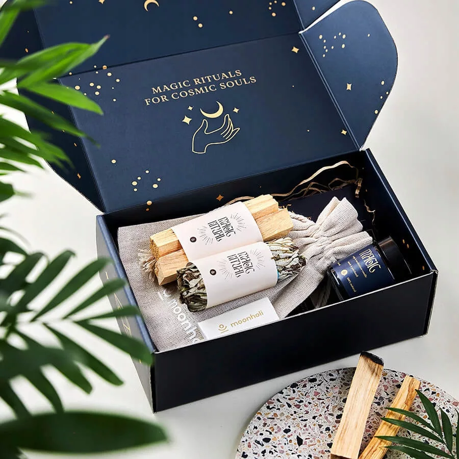 Siostry, czarownice, wiedźmy, wiedźmuchy, Baby-Jagi, w każdej kobiecie drzemie potężna siła, moc i prastara wiedza. Klimat naszego wieczornego zestawu podsycają intensywne zapachy piżma i paczuli, oddają one charakter silnej i mądrej kobiety. Do okadzania wnętrza, w którym jesteś, dodałyśmy tajemnicze zioło, Yerba Santę, zwaną „świętym ziołem”. W zestawie znajdziesz magiczny kamień Labradoryt, nazywany "tęczowym kamieniem księżycowym", mieniący się w tysiącu odmian barwy niebieskiej i zielonej, w zależności od padania na niego światła księżyca. Wieczorna magia i zachwyt w czystej postaci.