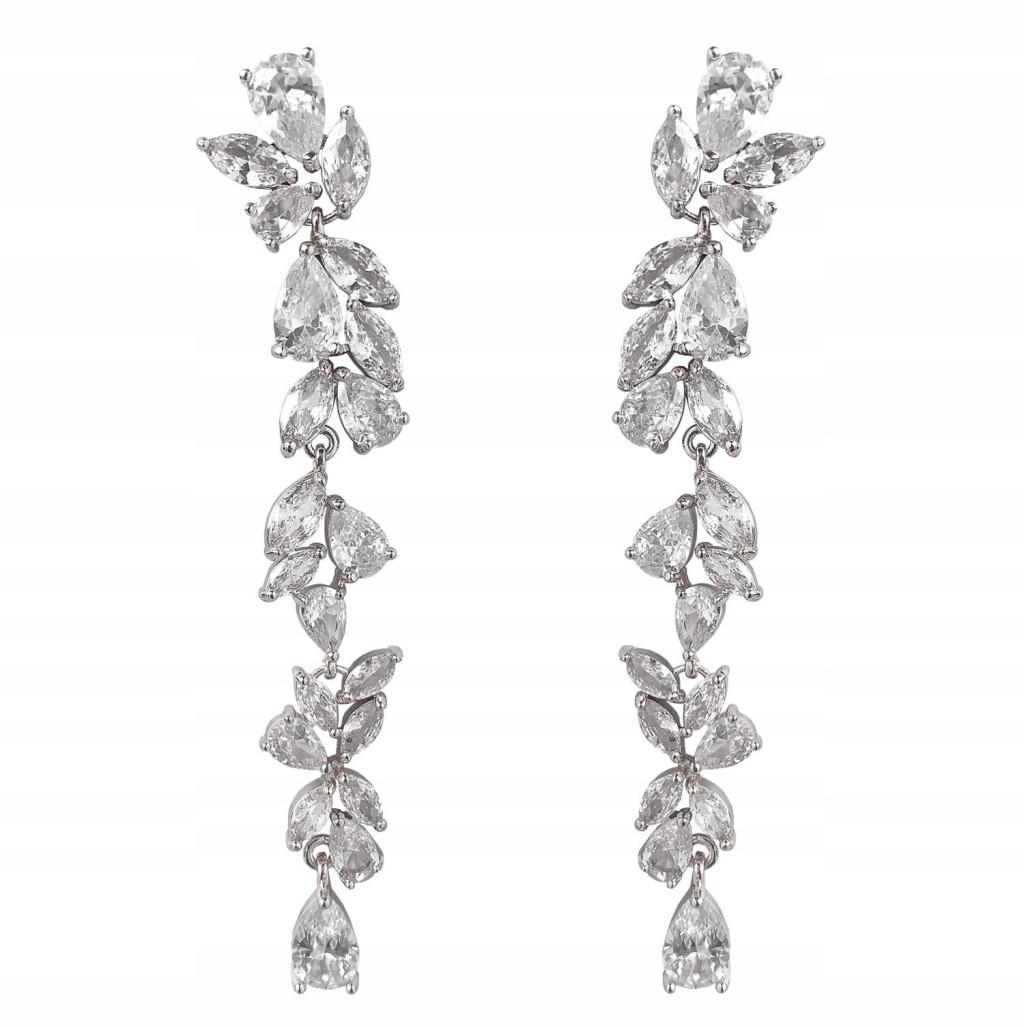 Ove čarobne suzne naušnice od elegantnog srebra savršen su dodatak za vjenčanja i posebne prigode. Izrađene od visokokvalitetnog materijala poput čelika, ukrašene su sjajnim cirkonima i kristalima koji će zasjati na vašim ušima. Naušnice su antialergijske i izuzetno pažljivo izrađene, te imaju duljinu od 9 cm. Njihov srebrni sjaj dominira, a štyfti osiguravaju sigurno nošenje. Ove prekrasne naušnice su savršen izbor za sve dame koje žele zablistati na poseban način.