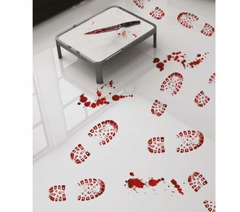 Krwawe ślady można położyć na podłodze, schodach lub przykleić w dowolnym miejscu w pomieszczeniu. Dekoracja wykonana z tworzywa, z jednej strony śliska z drugiej przylepna. Krwawe ślady odciśniętej podeszwy butów zrobią przerażające wrażenie na gościach, a jednocześnie świetnie udekorują pomieszczenie, niczym scena z horroru lub miejsca zbrodni.