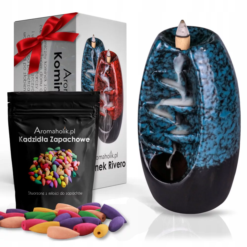 Został stworzony z myślą o wszystkich tych, którzy pragną połączyć piękny wygląd z dobroczynnym działaniem aromaterapii. Jego design został zaprojektowany z myślą by nie tylko cieszyć oczy, ale i pokrzepiać dusze. Oryginalny wygląd naszego ceramicznego kominka sprawi, że doskonale sprawdzi się on jako piękny element aranżacji wnętrz zarówno do domu jak i do biura. Kominek Rivero posiada żłobienia, dzięki którym cięższy od powietrza dym, spływa fantazyjnie w dół tworząc spektakularny efekt wizualny płynącego wodospadu. W połączeniu z mocą naturalnych kadzidełek przenieś się w świat głębokiej medytacji i skupienia
