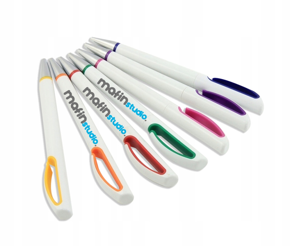 Długopisy znakujemy dwustronnie, metodą UV dowolną nadesłaną przez Ciebie grafiką. Kolory są intensywne a nadruk nieścieralny.