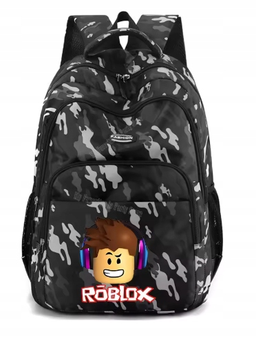Plecak z bardzo popularnej wśród młodzieży gry Roblox w kolorze czarnym pomieszanym z kilkoma odcieniami szarości. Posiada trzy komory, regulowane szelki oraz kieszenie boczne na napój. Idealny na prezent dla młodzieży oraz na rozpoczęcie roku szkolnego z modnym plecakiem.
