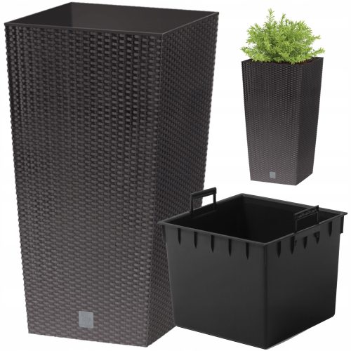 Wykonana z tworzywa sztucznego (polipropylen).To cała seria doniczek ozdobnych o fakturze imitującej plecionkę rattanową firmy Prosperplast o eleganckich, klasycznych kształtach.