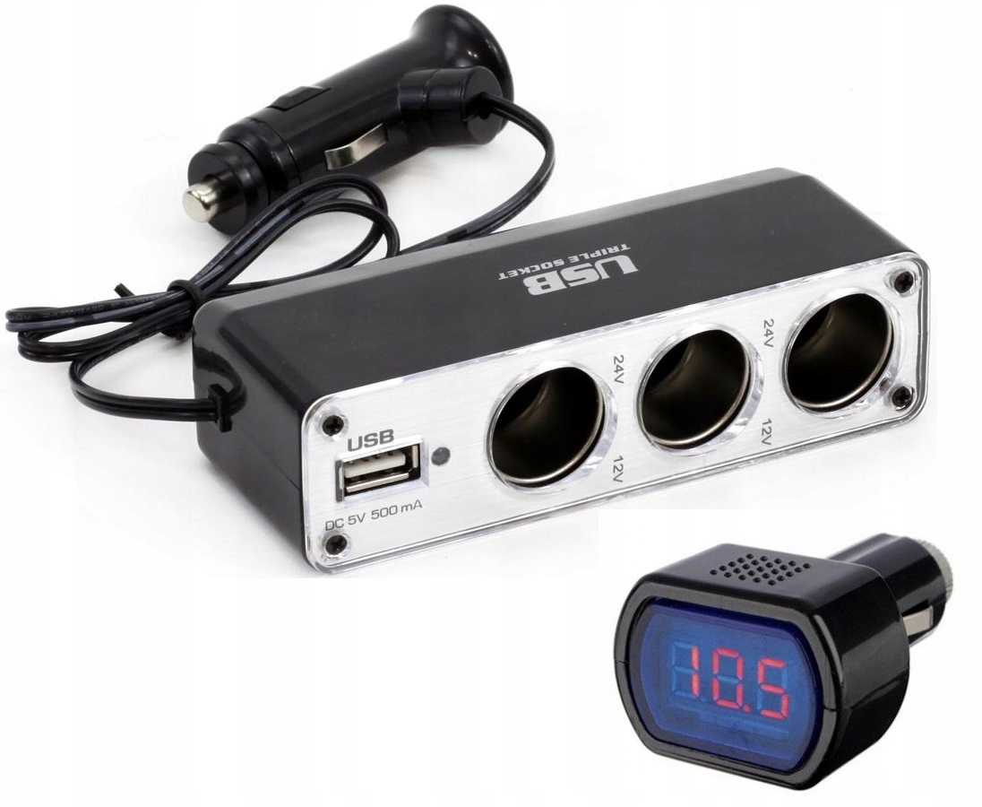 Najwyższej jakości, kompaktowy rozdzielacz zapalniczki samochodowej. Adapter umożliwia rozdzielenie zasilania z jednego gniazda na kilka urządzeń zasilanych za pośrednictwem gniazda zapalniczki samochodowej.