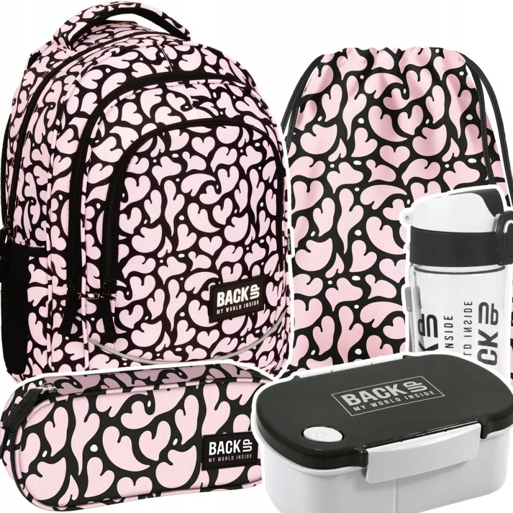 ZESTAW 5 el. Plecak szkolny młodzieżowy BackUP 26 L pastelowe serca, NUDE HEARTS (PLB6X37SET5CZ)