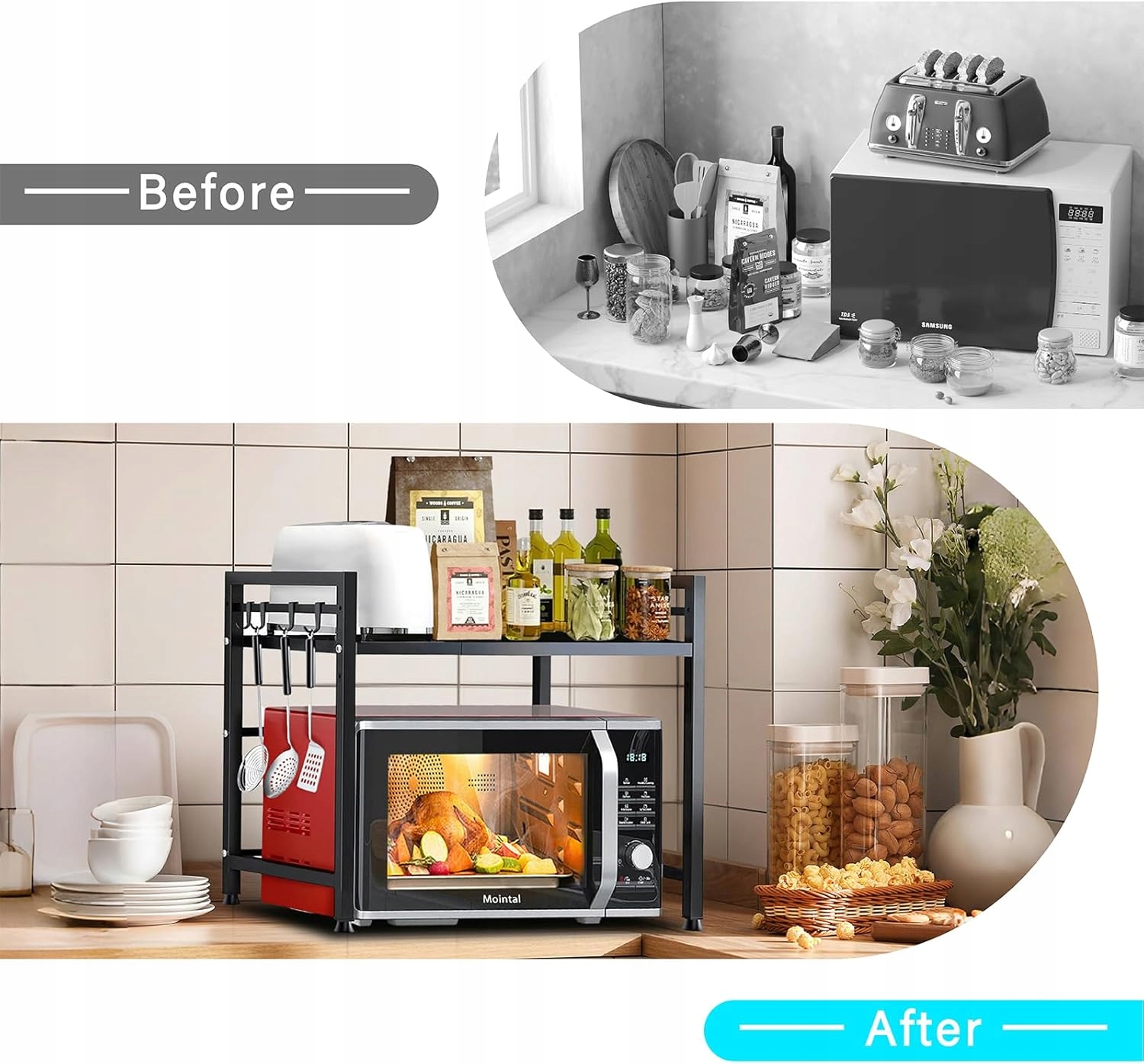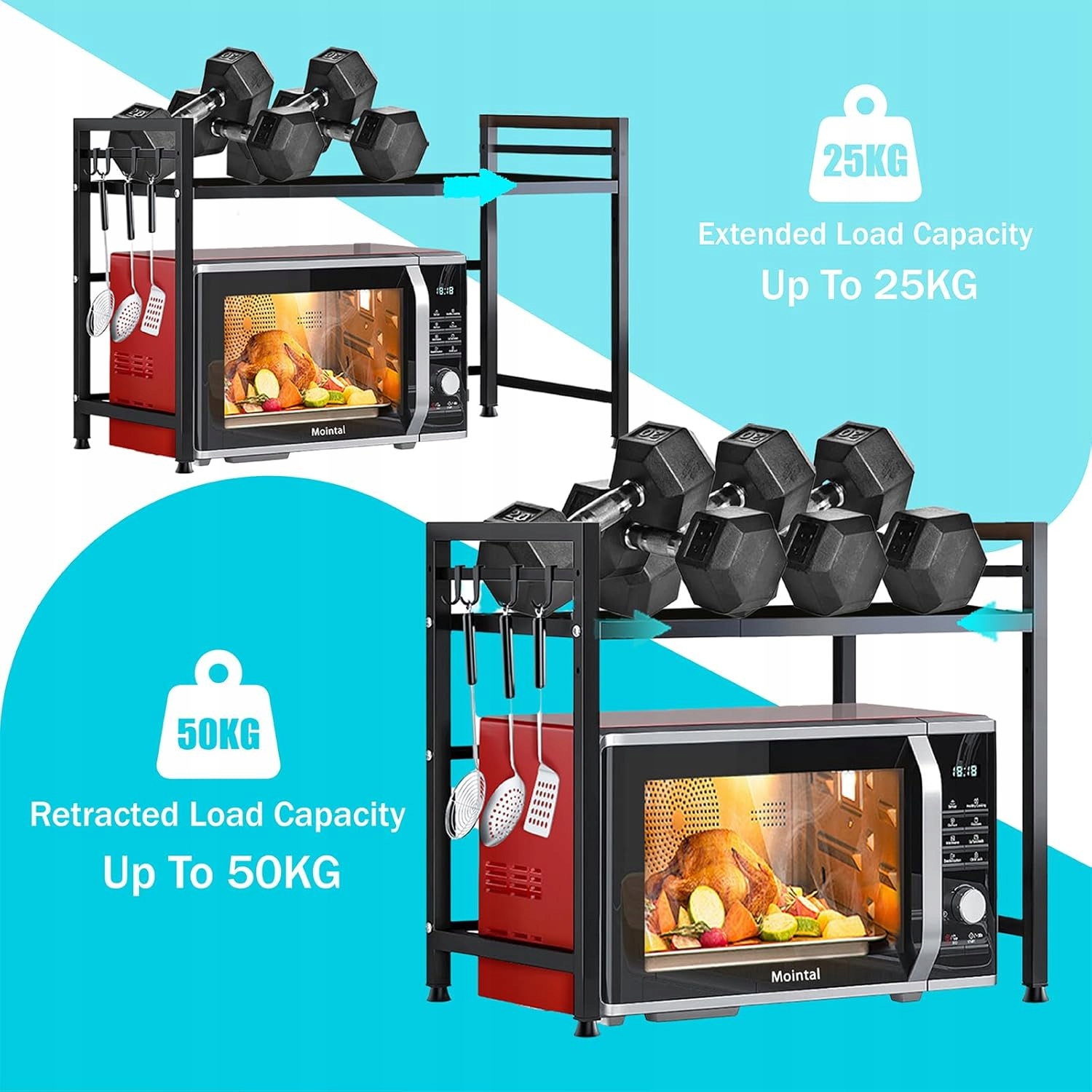 Mointal polica za mikrovalnu pećnicu može se prilagoditi po duljini i visini prema vašim potrebama, što je čini prikladnom za različite veličine mikrovalnih pećnica i drugih kuhinjskih aparata