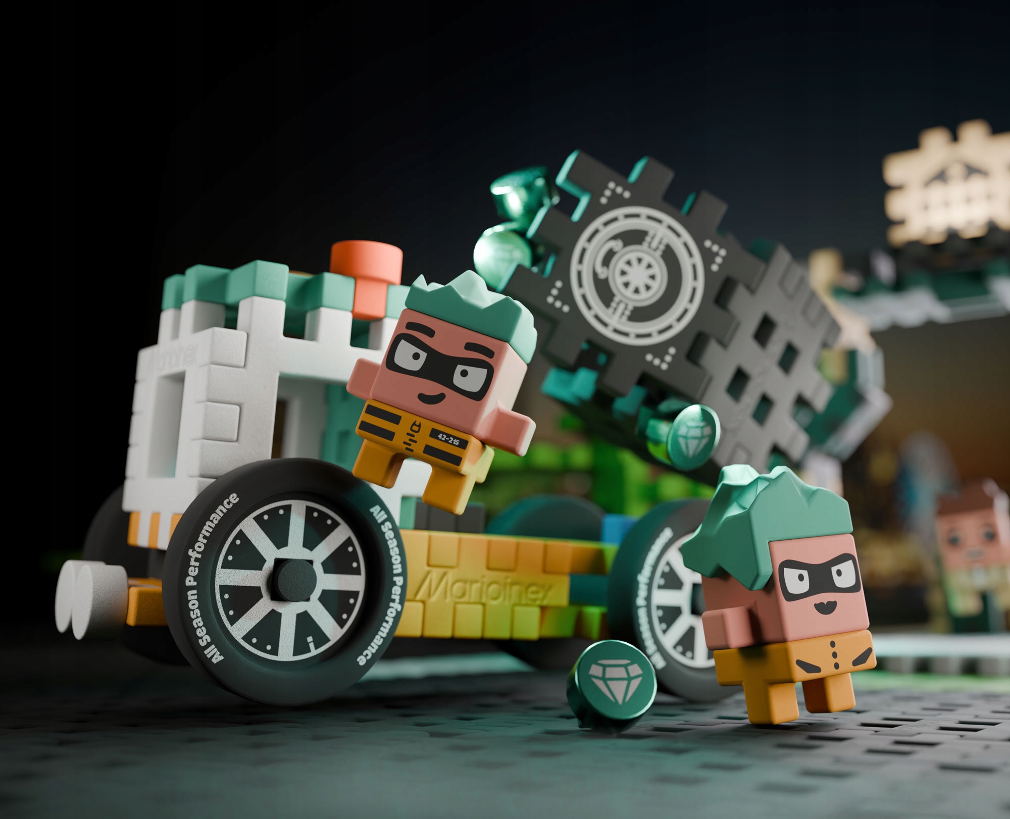 Ten zestaw składa się ze 148 elastycznych i kolorowych klocków, które umożliwiają zbudowanie imponującego banku z wzmocnionymi ścianami oraz skarbcem pełnym diamentów.