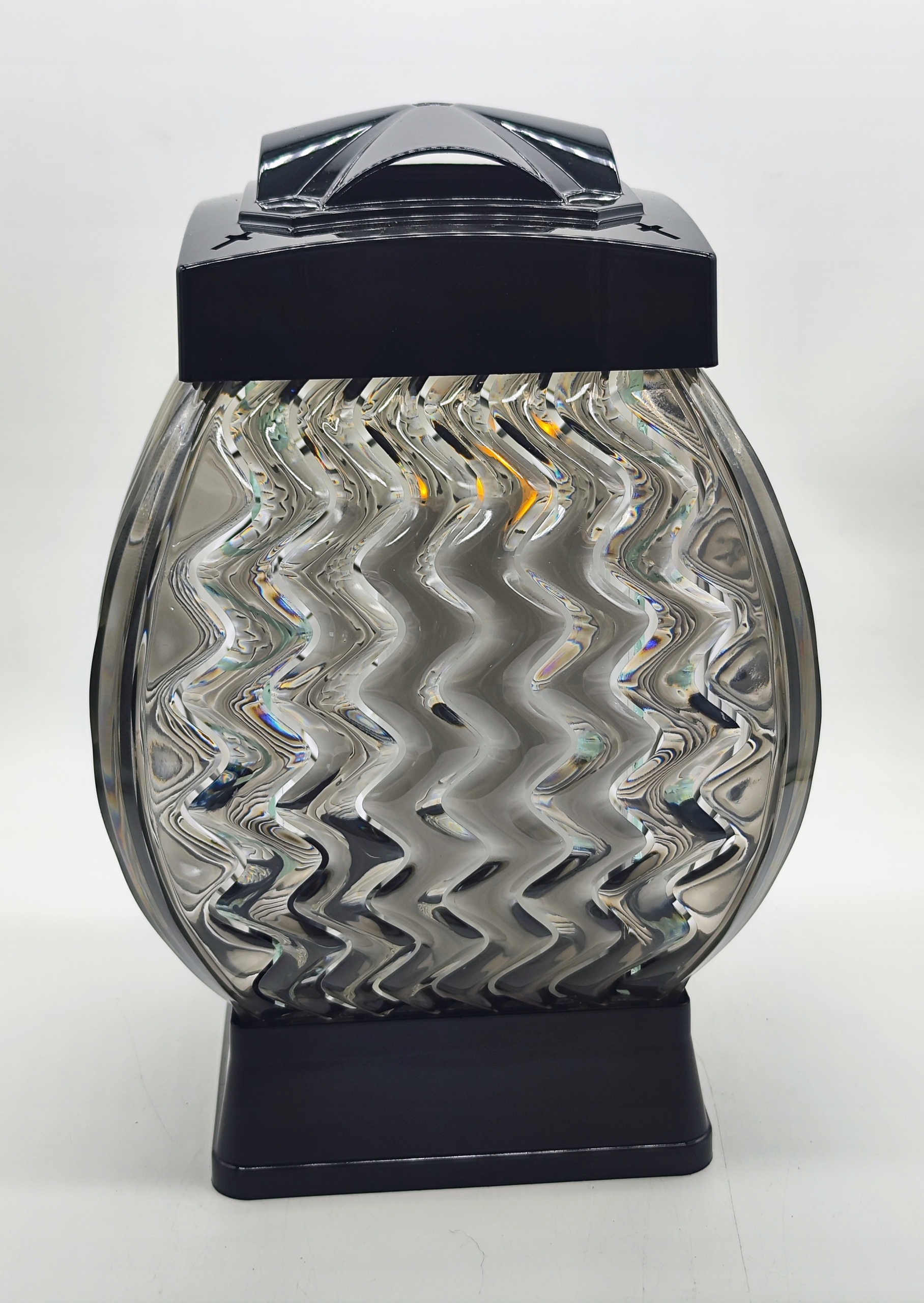 Kolor znicza jest niepowtarzalny. A sam znicz fascynujący. Oryginalny design a przy tym prostota tworzą ten produkt interesującym. Lampion posiada po bokach piękne dymne fale. Lampion pięknie odbija światło