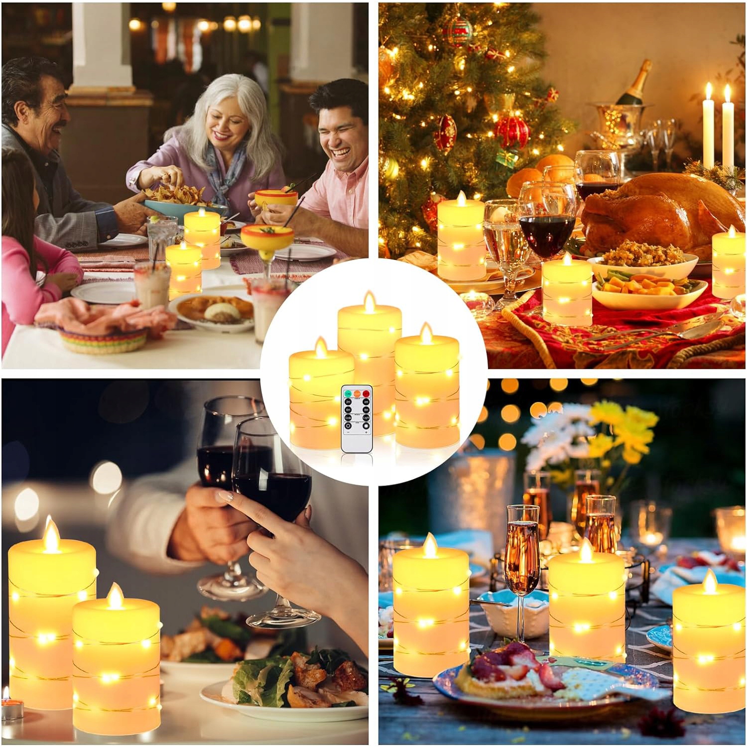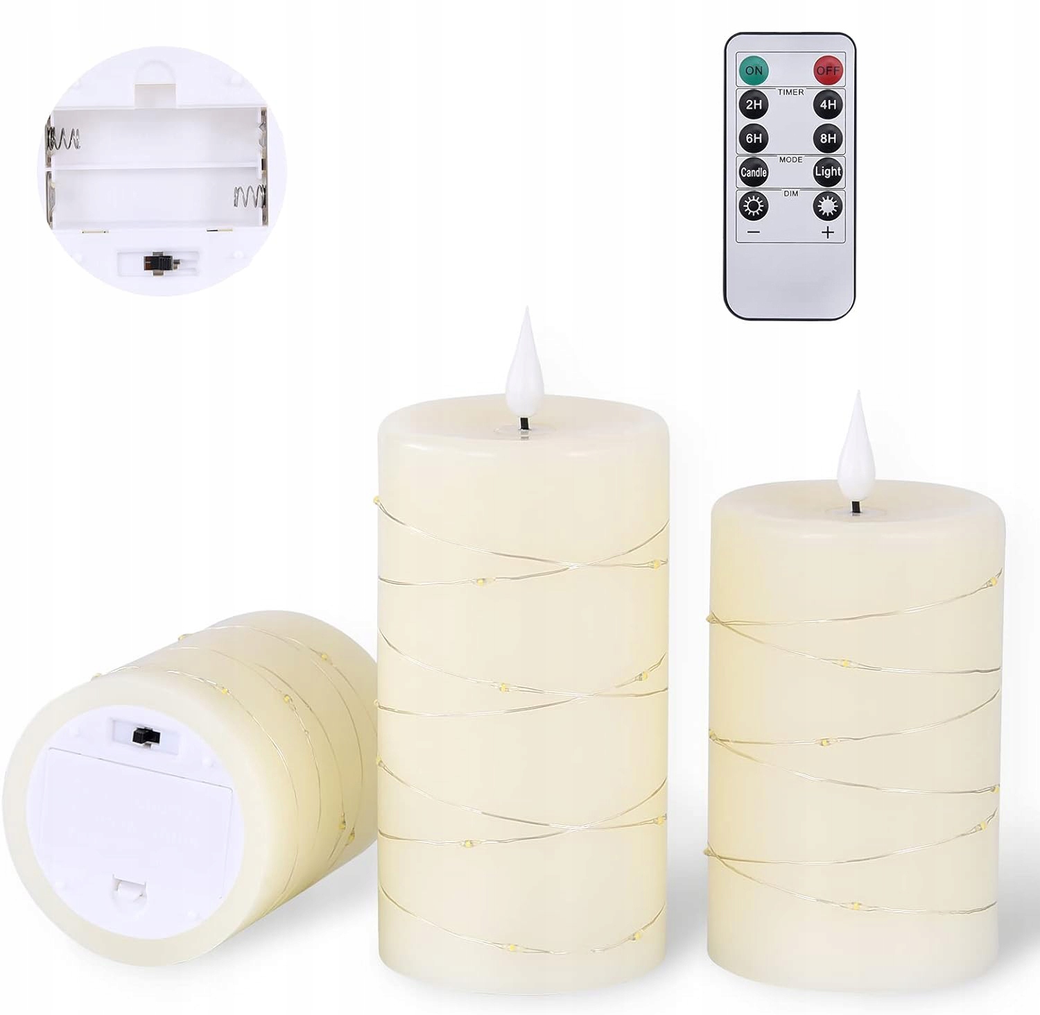 ????️????️10-klawiszowy pilot: po ustawieniu timera świece zapalają się codziennie o tej samej porze i świecą przez 2 / 4 / 6 / 8 godzin.