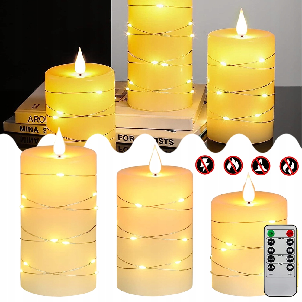 ????️????️ Świece LED: nowa technologia – każda świeca jest owinięta srebrnym drucikiem z żarówami LED. Te łańcuchy świetlne składają się z 12 do 16 lampek LED, które wyglądają jak małe, jasne kropki oraz niepowtarzalny i czarujący wygląd.