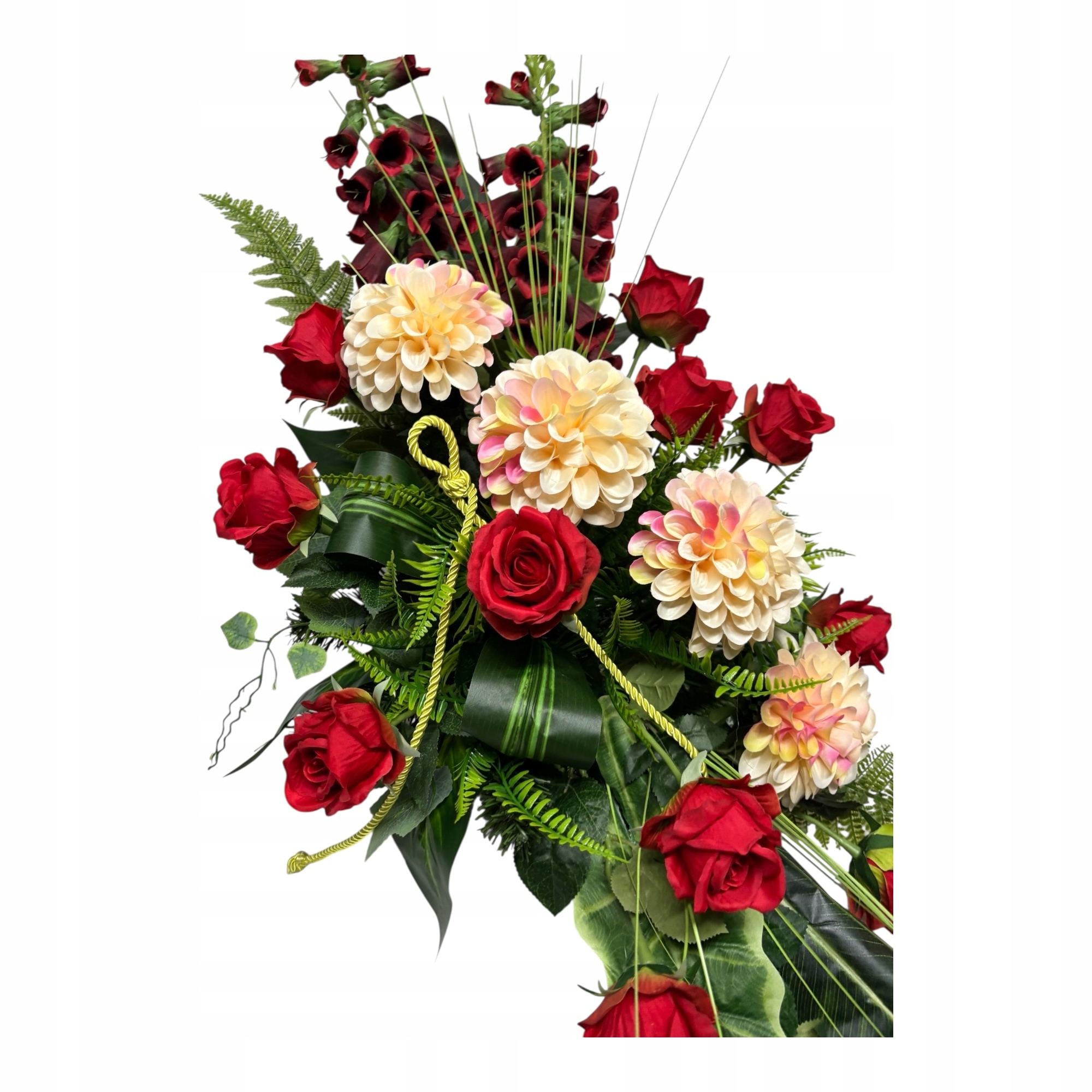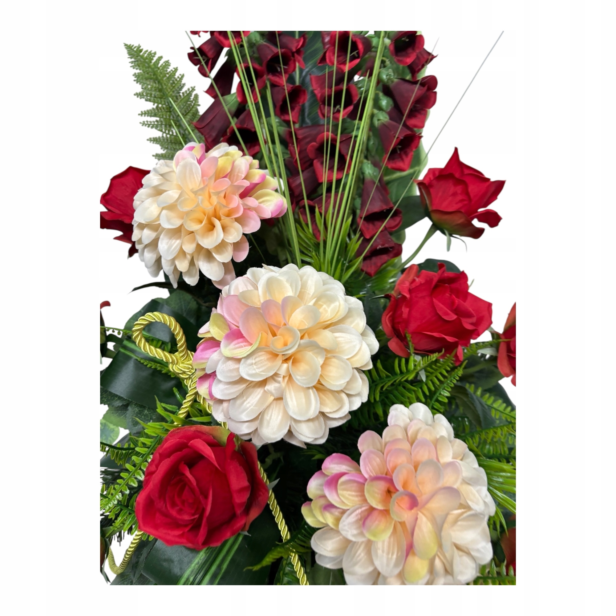 Kompozycja kwiatowa wykonana z wysokiej jakości kwiatów sztucznych.