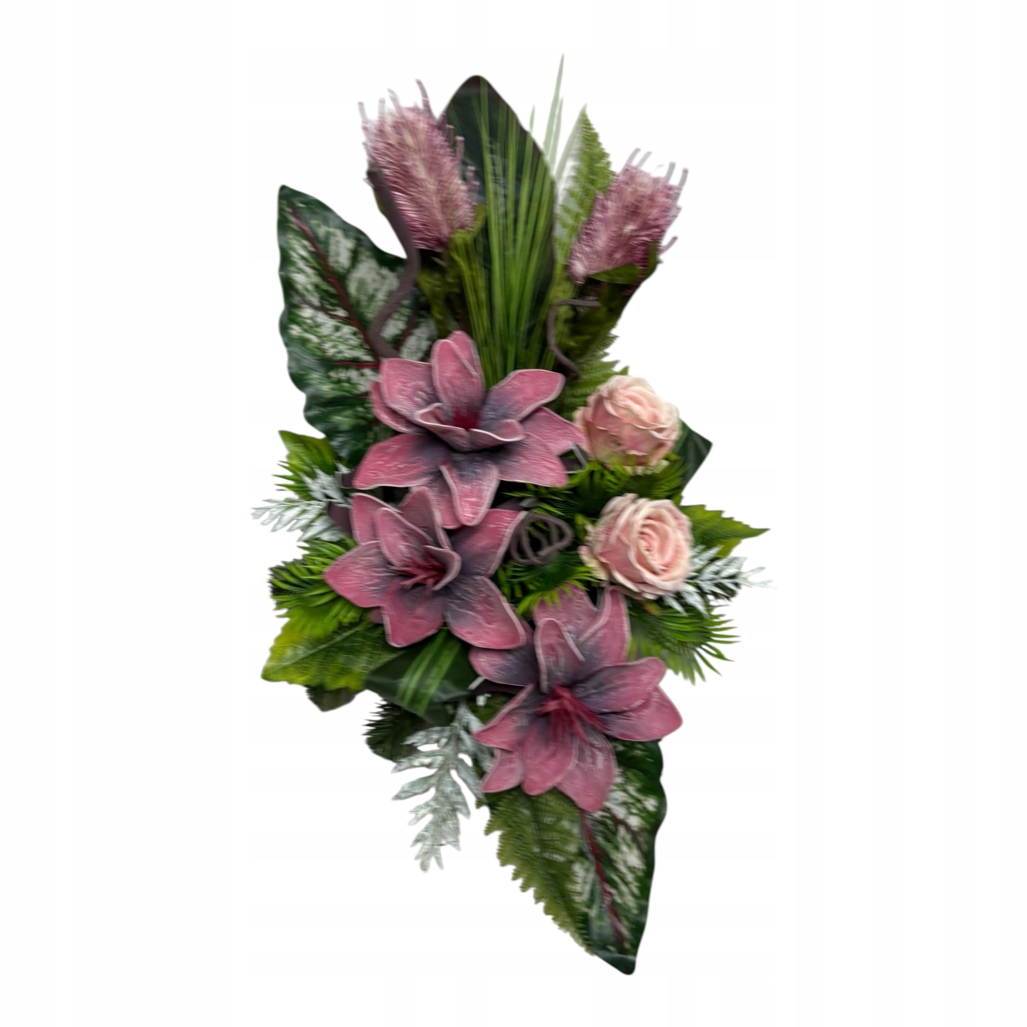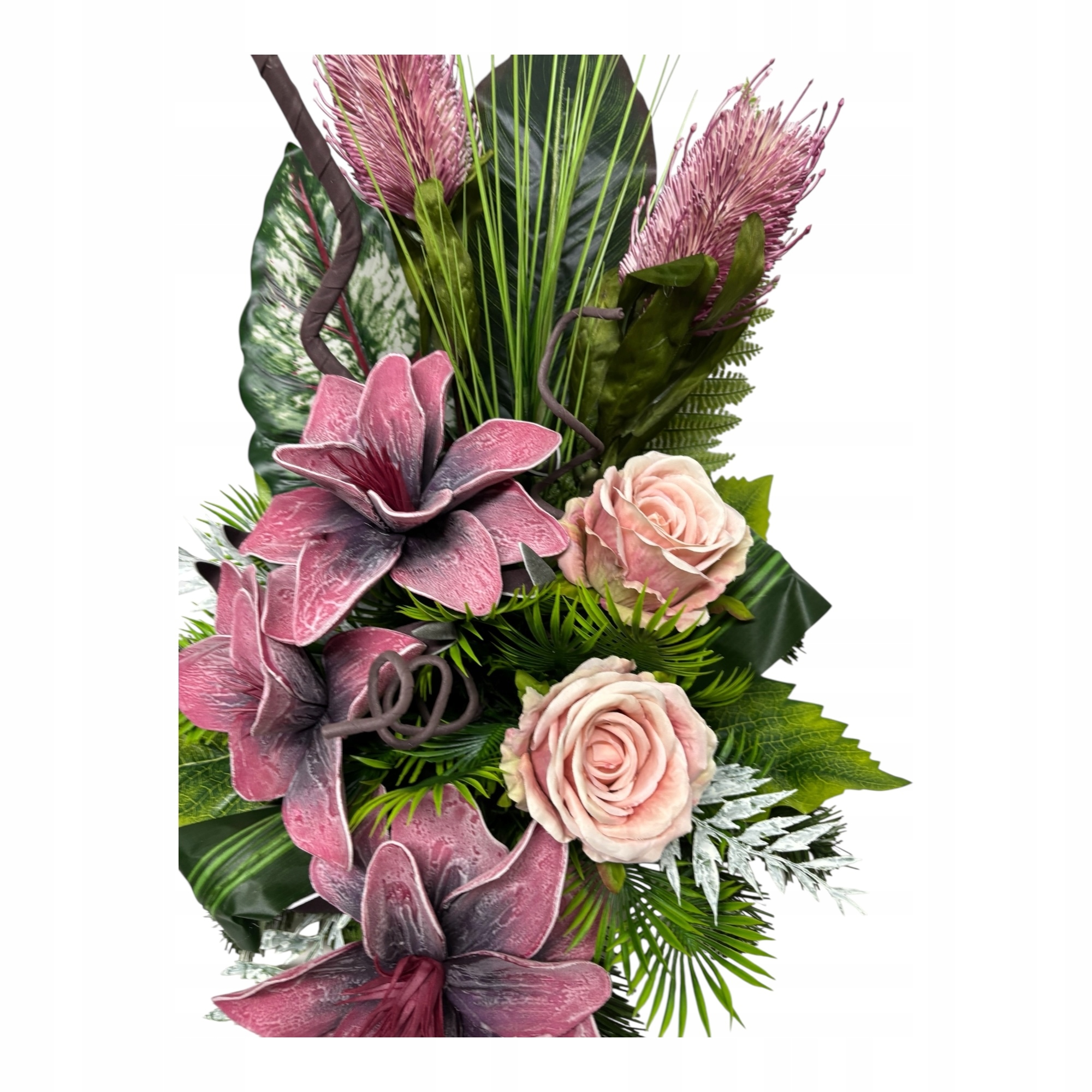 Kompozycja kwiatowa wykonana z wysokiej jakości kwiatów sztucznych.