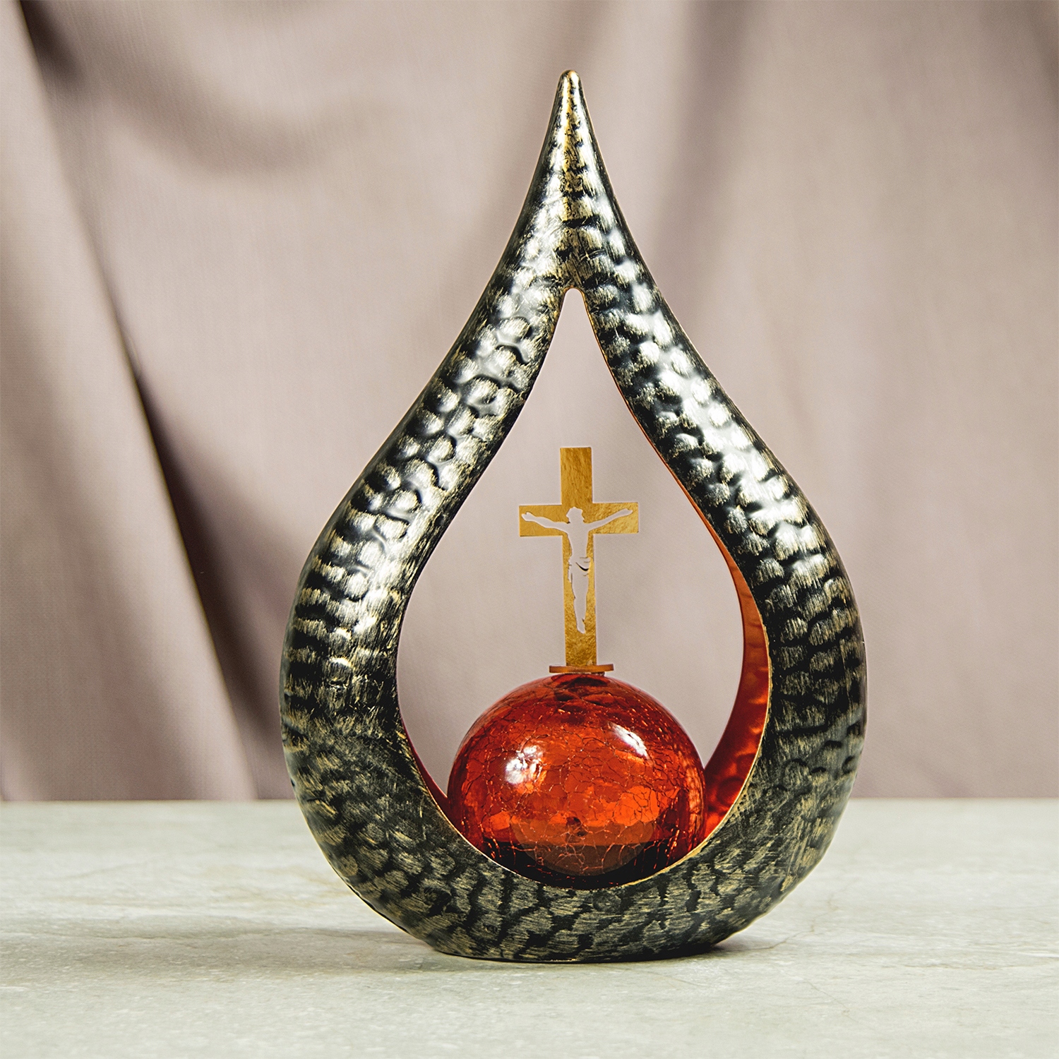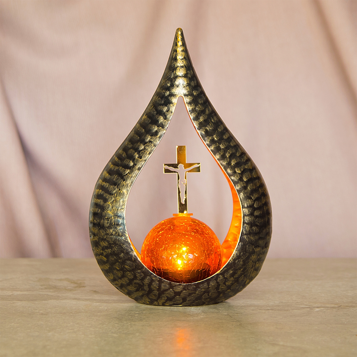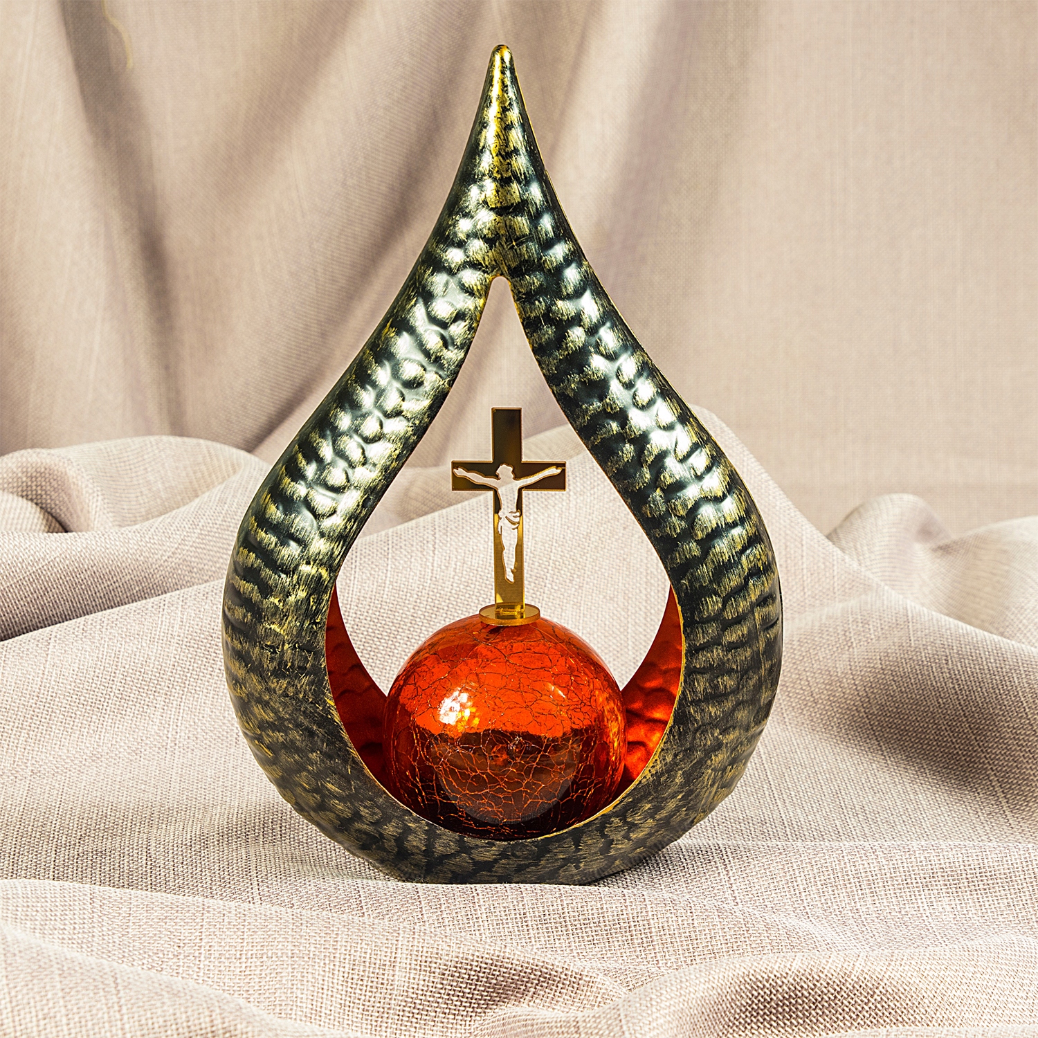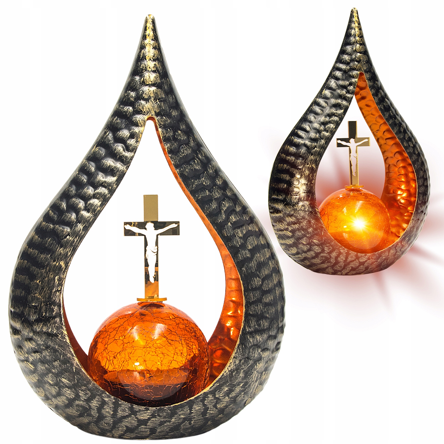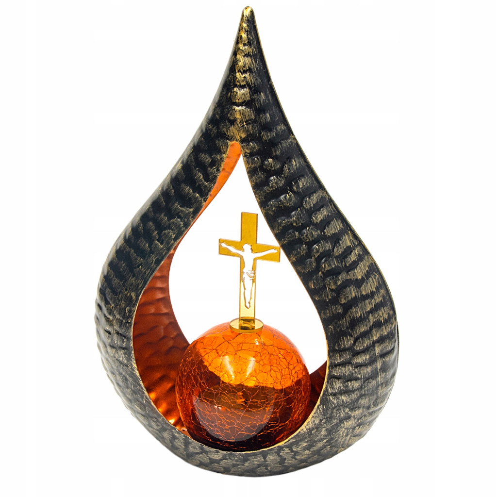 Znicz solarny STATUETKA NA CMENTARZ duża latarenka LED Z KRZYŻEM