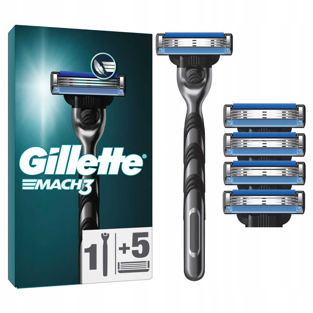 dzięki maszynce do golenia Gillette Mach3. Maszynka Mach3 jest wyposażona w pasek nawilżający umożliwiający jeszcze łatwiejszy poślizg (w porównaniu z Mach3) oraz wkład z 3 ostrzami zapewniający łatwe, czyste i dokładne golenie dla większego komfortu. Osłona z mikrolistkami pozwala przygotować skórę do golenia, jeszcze bardziej poprawiając ogólne wrażenia.