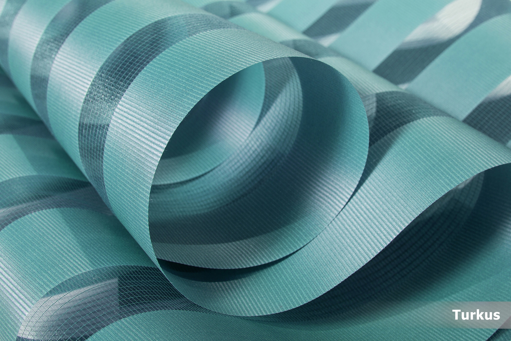 Rodzaj tkaniny: 100% poliester; naprzemienne pasy materiału i siatki o dużych oczkach