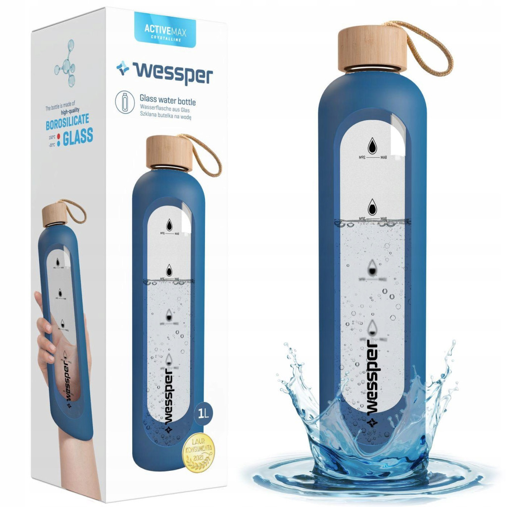 Wessper Activemax Crystalline to wyróżniająca się eleganckim designem butelka motywacyjna, wykonana ze szkła borokrzemowego.