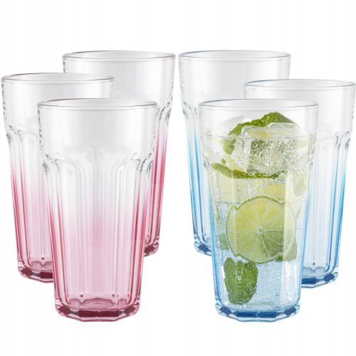Zestaw Gigi Fine&Sweet to sześć pięknych szklanek w pastelowych odcieniach różowego i niebieskiego ombre. Szklanki zostały wykonane z bezpiecznego, grubego szkła, co zapewnia trwałość i solidność. Doskonale sprawdzą się jako naczynia do serwowania wody, soków i orzeźwiających napojów.