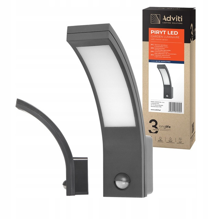 Oprawa ogrodowa o prostym kształcie z estetycznie wbudowanym czujnikiem ruchu PIR, która doskonale oświetli wejście do budynku, podjazd, taras czy ogrodowe altany.