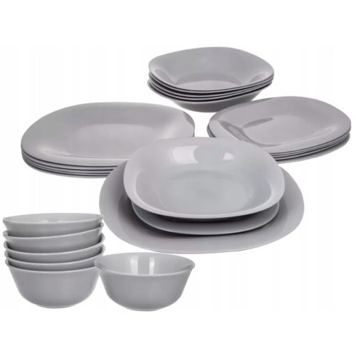 ✅Niezwykle teraz modny kwadratowy szary serwis obiadowy.