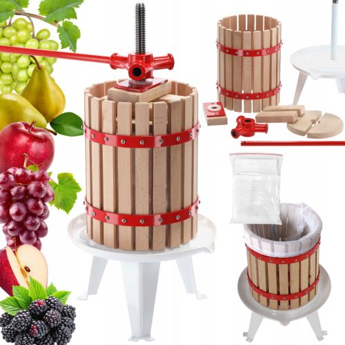 Prasa wykonana jest ze stali i drewna bukowego. Stal powlekana jest farbą proszkową (spożywczą) dzięki czemu doskonale "izolowana jest smakowo" od części prasy. Drewno bukowe w procesie parowania pozbawione jest soków wiec również nie ma wpływu na sok z wyciskanego owocu.