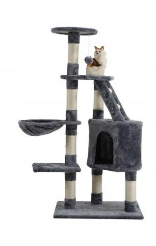 Domaća mačja kula za grebanje i igru je savršena kombinacija funkcionalnosti i zabave za vašeg ljubimca. Sa solidnom konstrukcijom, mnogo nivoa za istraživanje i udobnim materijalom, ova kula pruža vašem mačku mnoštvo mogućnosti za zabavu i odmor. Bezbedni materijali i prirodno drvo garantuju dugotrajnost, dok elegantan dizajn čini ovu kulu estetski privlačnom. Vaš mačka će uživati u drapanju, penjanju i odmaranju na različitim nivoima, dok vi uživate u zajedničkim trenucima s vašim ljubimcem. Visina: 132 cm, Širina: 50 cm, Dužina: 50 cm, Boja: siva sa belim elementima, Broj nivoa: 7.